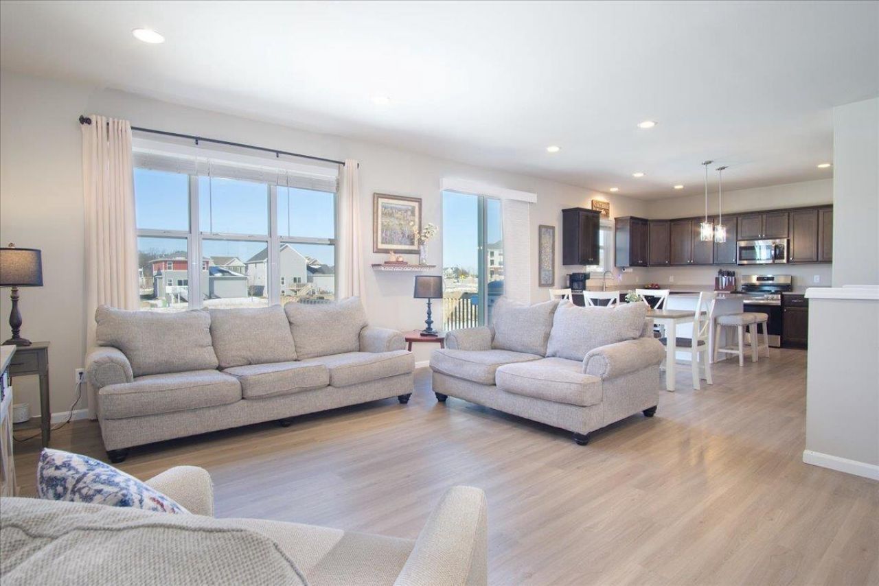 Nearly new! Efficiency & comfort are chief among this home's many assets - well designed w/extras you can't get new for the $$: fenced yard, sunset-facing deck w/stairs to yard, window coverings, utility sink... All on a prized lot abutting greenspace! Smith's Crossing is so well located to get to all Sun Prairie has to offer, while you can walk to the elementary school right in the neighborhood, YMCA, parks, and miles of trails! Entertain in your great room and gathering kitchen. Ensuite primary w/WIC & full bath is sweetly separated from the two add'l bdrms & hall bath. Smart features (thermostat, lock, door bell, switches) for your convenience & connectivity. Huge walk-out LL with rough-in for full bath is ready for you to grow into or finish soon! Welcome home!