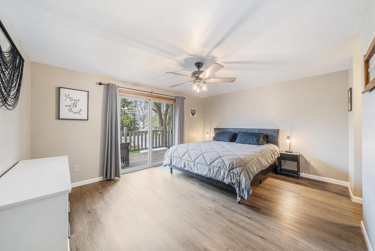 De Pere home located on a cul-de-sac with a brand new kitchen and privacy fence. Enjoy the deck and patio area for entertaining or relaxing evenings. The living room offers an open feel with large windows that bring in plenty of natural light. The updated kitchen features ample cabinet space and functionality. Convenient first floor laundry adds everyday ease. The upper level includes three bedrooms, including a spacious primary suite with a full ensuite bathroom and access to the deck. The lower level offers a finished rec room with a bar area, for additional living and entertaining space. Located in the De Pere School District. Lower level sq footage provided by matterport floorplan