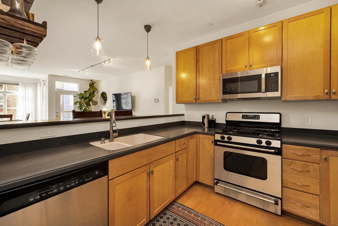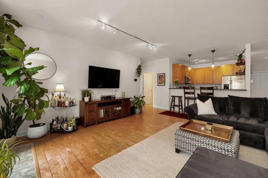 Sophisticated, light-filled top-floor corner residence with an open-concept layout and private S/SW-facing balcony with gas grill hookup. Includes two deeded heated garage parking spaces with bike rack. Freshly painted interiors, high ceilings, and oversized windows create an airy feel just steps from Brady Street, the North End, and Brewer's Hill dining. Kitchen offers newer stainless appliances, breakfast bar, and maple cabinetry with pull-outs. In-unit laundry and a same-floor storage locker add convenience. Spacious primary bedroom with double closets and tile bathrooms. Newer mechanicals provide peace of mind. Move in and enjoy the best of urban living. Some photos have been virtually staged or AI-enhanced to show potential use of space