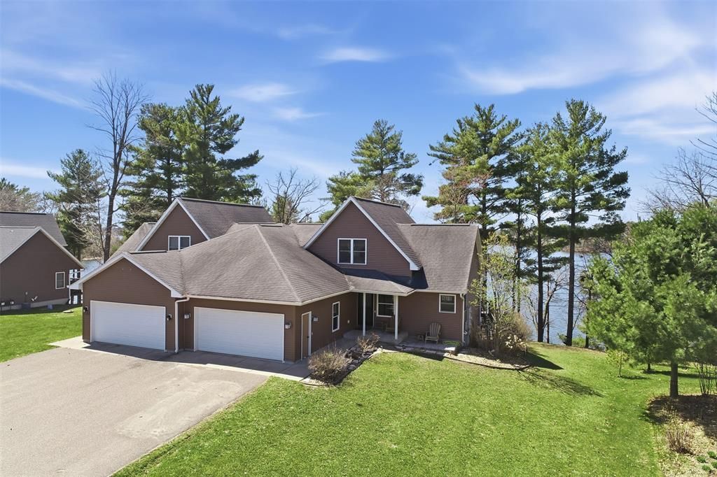 Set along the shoreline of Prairie Lake within the private Gopher Point Estates community, this well- cared-for home offers an easy, low-maintenance approach to life on the Chetek Chain of Lakes. This property boasts big lake views and captures picturesque sunset views, while providing direct access to endless recreation on the water. The main level is designed for comfortable everyday living, featuring a lakeside primary suite, an open living area with vaulted ceilings, a fireplace, private deck facing the water, and expansive windows that highlights those unbeatable lake views. A loft above adds flexible space for guests, a home office, or additional sleeping. The walkout lower level expands the living space with a large family room, second fireplace, and a wet bar/kitchen area?ideal for entertaining or hosting extended stays. Additional bedrooms and a full bath on this level provide privacy and convenience for guests, with direct access to the lakeside patio and easy access to the water's edge. Ownership at Gopher Point Estates includes association-managed lawn care, snow removal, trash service, a private boat launch, and shared recreational amenities throughout the 124-acre setting. Whether you're looking for a full-time residence or a seasonal retreat, this property offers a comfortable and convenient way to enjoy lake living on the Chetek Chain.