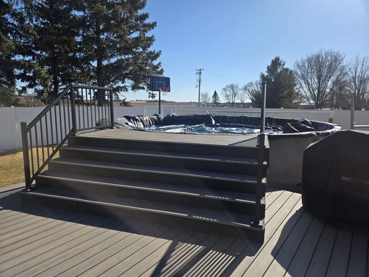 Summer ready here! Nothing to do but move in and enjoy. This 4 bedroom, 3 bath home has been very well loved. Great open floor plan with split bedroom design, 10 foot ceilings in living room and kitchen, 12 foot ceilings in dining room. Back yard is fenced in with above ground pool and patio off the master suite so you can enjoy evenings in your hot tub. Second water meter for exterior water has been installed for affordability. Garage with epoxy flooring is well heated for year round comfort. Plenty of additional living space in LL. Seller is realtor. Buyer to verify any important information.