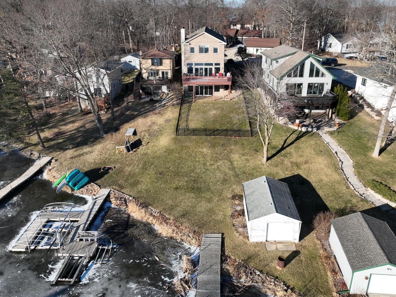 Experience lake living at its finest in this stunning southwest-facing waterfront home with panoramic views and unforgettable sunsets. This 4BR, 3.5BA retreat offers an open-concept design with a chef's kitchen featuring stainless appliances, beveled granite counters, and custom maple cabinetry. The great room and dining area capture refreshing lake breezes, while upstairs includes four spacious bedrooms, an office, and a serene lakeside primary suite with tiled shower and walk-in closet. The walk-out lower level boasts 10-ft ceilings, in-floor heat, wet bar/kitchenette, and a large, tiled shower--perfect after lake days. Enjoy the wraparound deck, private pier, boathouse, and heated 2.5-car garage for the ultimate lakefront lifestyle. Bonus finished area above the garage. New fenced yard!