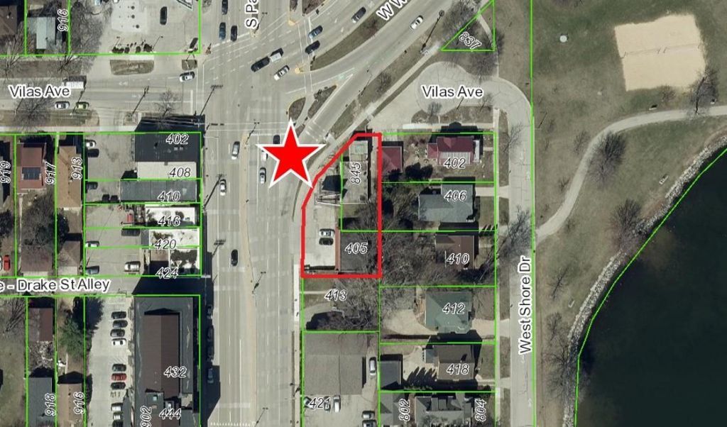 9,499 sq.ft. 2 parcel mixed use lot zoned TSS at the intersection of W. Washington Ave and S. Park St. 845 Vilas Ave was a prior city water well building with driveway access from Vilas Ave this building could be torn down for more parking or build something new (subject to city approval). 405 S. Park St. is a free standing commercial building leased out at $2,300/month (lease expires 12/31/2026) with onsite site parking and additional income from the billboard with Adams Outdoor Advertising ($9,600 annually). A great location for someone looking to occupy with their business or continue leasing. This is an excellent location just 1 mile from downtown and the UW Campus.