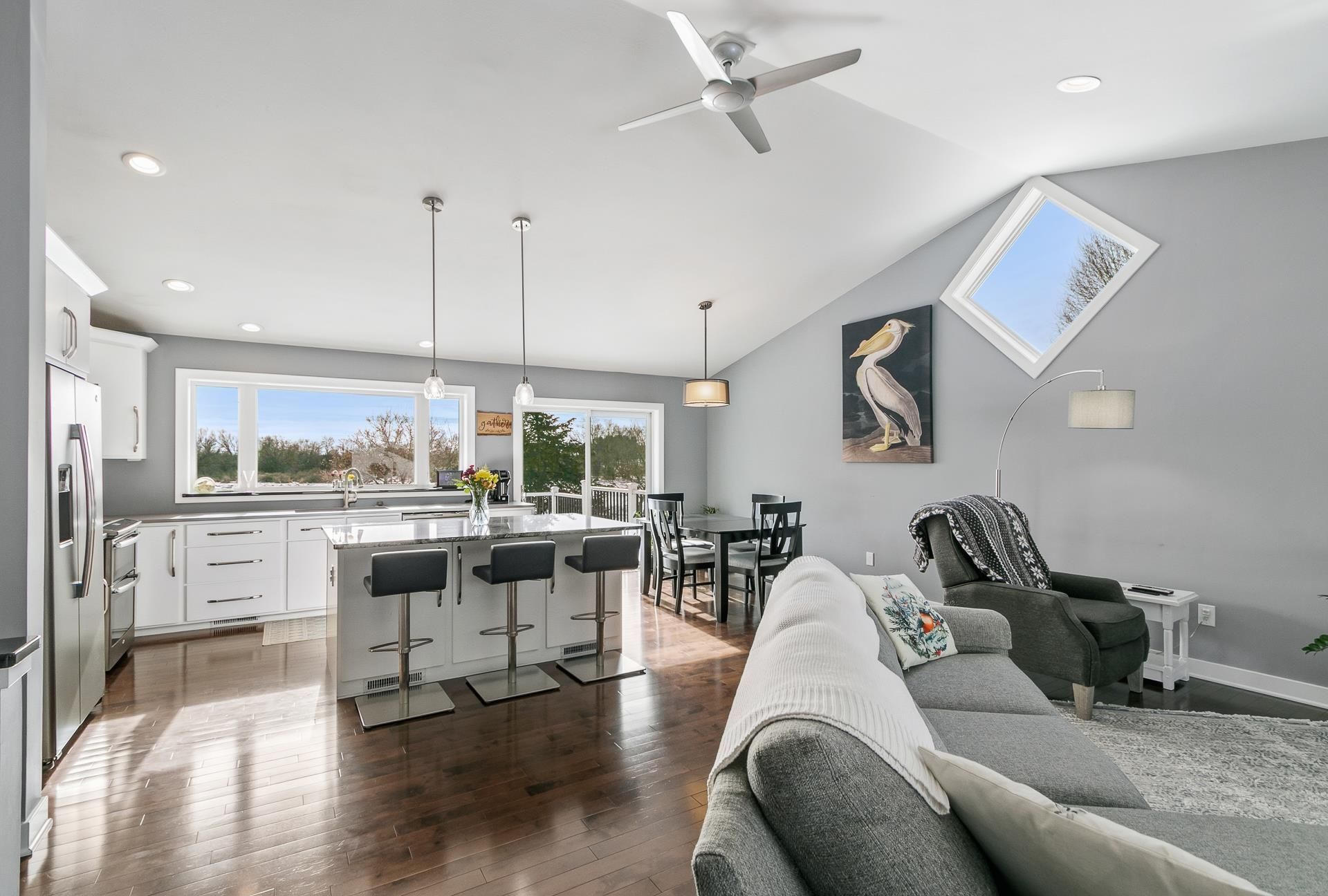Set on a spacious .65-acre lot with peaceful, country-like views, this beautifully updated ranch home offers the perfect blend of comfort, style, and functionality. The home features a completely renovated main living area highlighted by new hardwood floors, updated windows, & an open-concept kitchen designed for both everyday living and entertaining. The kitchen showcases a large center island, all-new cabinetry and countertops, and flows seamlessly into the living space anchored by a new gas fireplace. Step outside to the low-maintenance composite deck overlooking open fields.The main level offers three generously sized bedrooms, while the finished walk-out lower level adds additional living space including a guest bedroom, full bath, and large storage area. Enjoy outdoor living on the expansive paver patio beneath the deck. Great north side location! Call today!