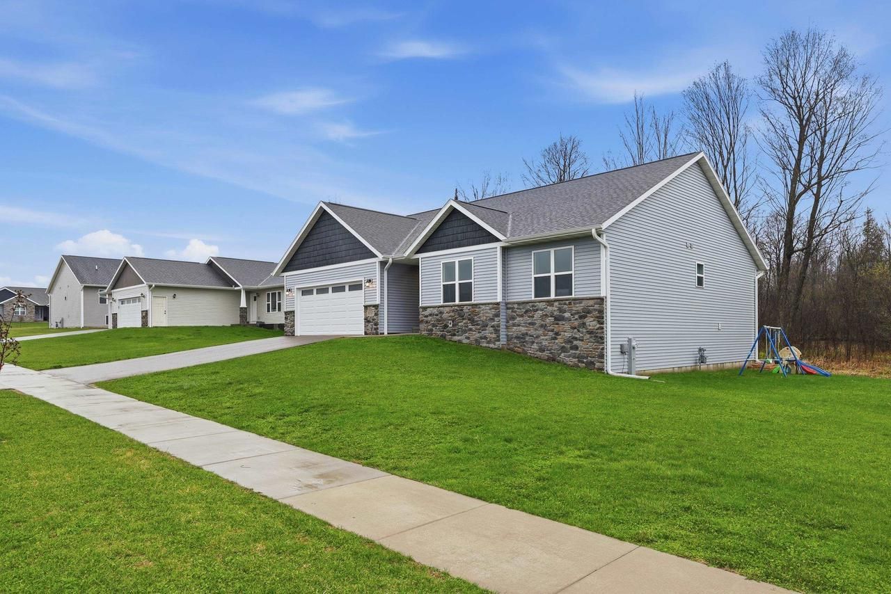Move-in ready and thoughtfully designed, this 3-bedroom, 2-bath ranch home offers 2,212 square feet of comfortable living space tailored to modern lifestyles. A welcoming foyer opens to a bright, open-concept living area with vaulted ceilings that flows seamlessly into the spacious dining area and kitchen. The kitchen is equipped with an oversized center island, custom cabinetry, stainless steel dishwasher and microwave, and a walk-in butler's pantry, along with convenient access to the backyard and deck. The lower level expands your living space with a large, finished family room and is already framed for a fourth bedroom and stubbed for a future third bathroom, offering excellent potential for customization. Additional features include seamless gutters and a blacktop driveway. Built in 2022 and situated on a 0.36-acre lot, this home is ready for you to move in and enjoy.