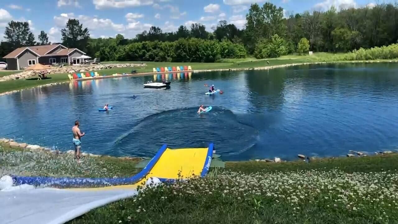 Rare find. Land and water lifestyle with your own retreat featuring sandy beach swimming pool quality pond with water slide and raft, stocked with Perch, Bluegills and Bass. Concrete pond side patio plus additional patios w/outdoor kitchen w/2-Green Egg,grill & Wood Pizza oven. Hot tub, Koi pond and additional wild Duck pond for wildlife and water fowl. Plenty of wildlife-Deer, Turkey,Fox & more. Custom designed and built with extreme craftsmanship. 3 bedroom 2 bath home with 600sf master suite including spa style bath with 6 x 5 steam shower w/multiple jets. 10 ft ceilings, cathedral ceiling and vaulted throughout. Heated floors in 2 bdrms & kitchen. Great room with windows 3 sides, dining/siting area, 4 car heated floor attached garage. 30 x 40 ft shop/hobby or toys w/200amp