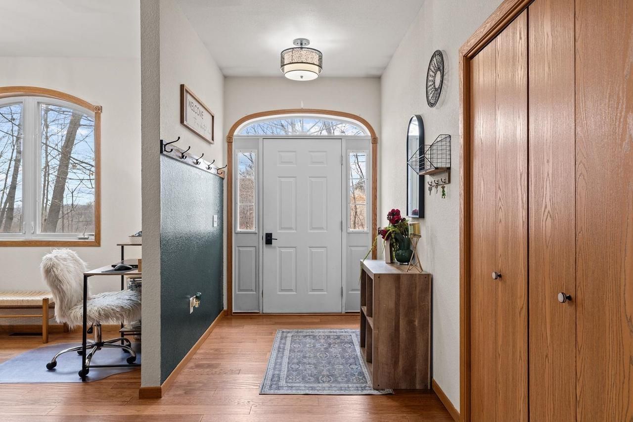 Showings start at open house 3/8. Set on 8 private acres in a country setting, but close to town. This impressive two-story contemporary home offers nearly 4,000 sq ft of thoughtfully designed living space. With 5 bedrooms and 3.5 baths and bonus rooms, there's space for everyone and everything. The main living areas are bright and inviting, featuring an open, flowing layout ideal for both everyday living and entertaining. The finished lower level includes a full suite with its own kitchen, providing exceptional flexibility for extended family, guests, or multi-generational living. Spacious bedrooms, abundant storage, and well-appointed baths add to the home's comfort and functionality. Enjoy the tranquility of rural living with the privacy of expansive acreage, all while having the space and amenities to fit today's lifestyle. The detached garage is 30 x 40. Exceptional hunting and recreation. A rare opportunity to own a private country retreat with versatile living options.
