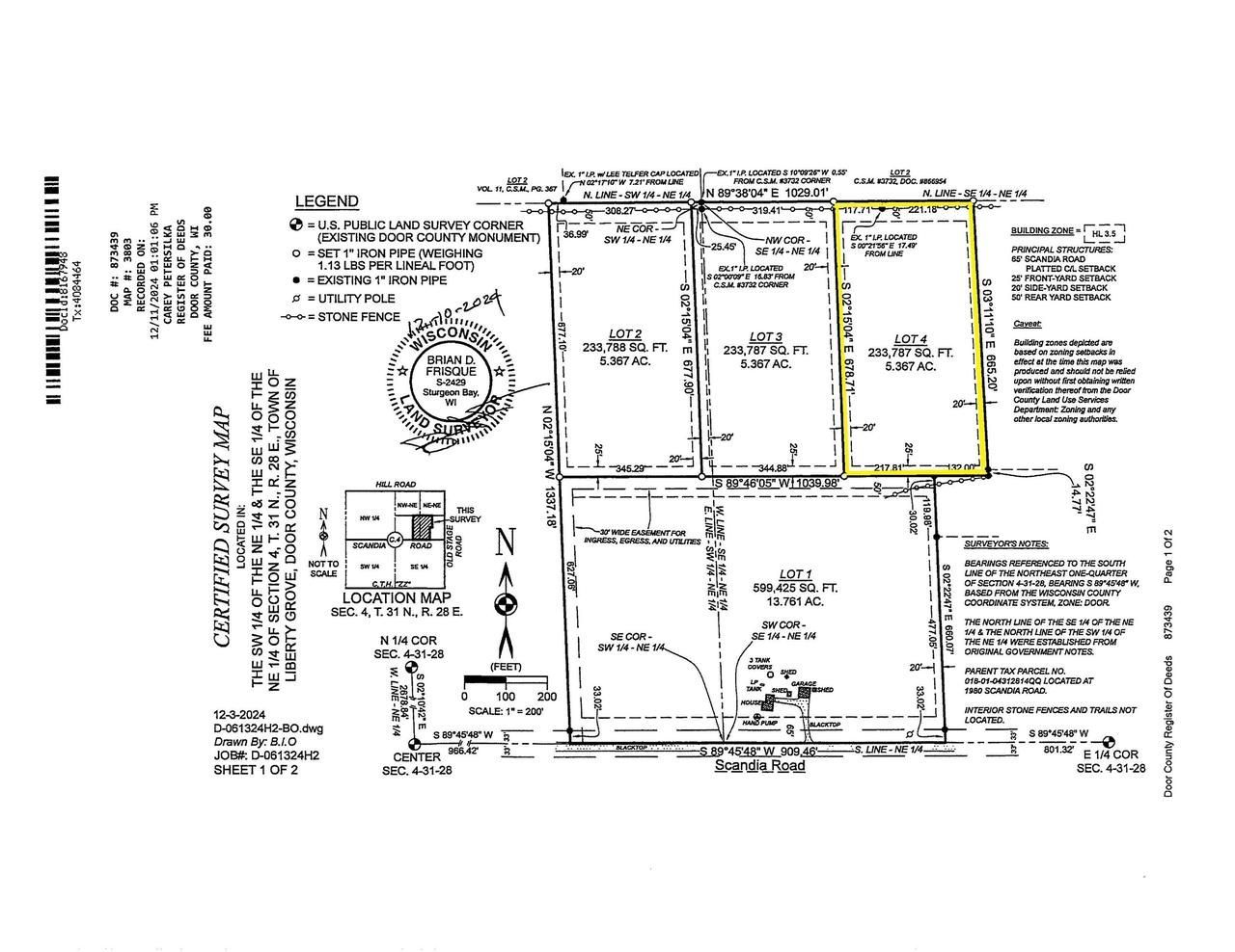 Create your perfect Door County retreat on this 5.367-acre wooded lot?an ideal canvas for your dream home or private getaway. A gravel drive is already in place, and a full survey has been completed, saving you time and effort. Enjoy the tranquility of a secluded setting while being just minutes from all the dining, shopping, and shorefront charm Sister Bay has to offer.